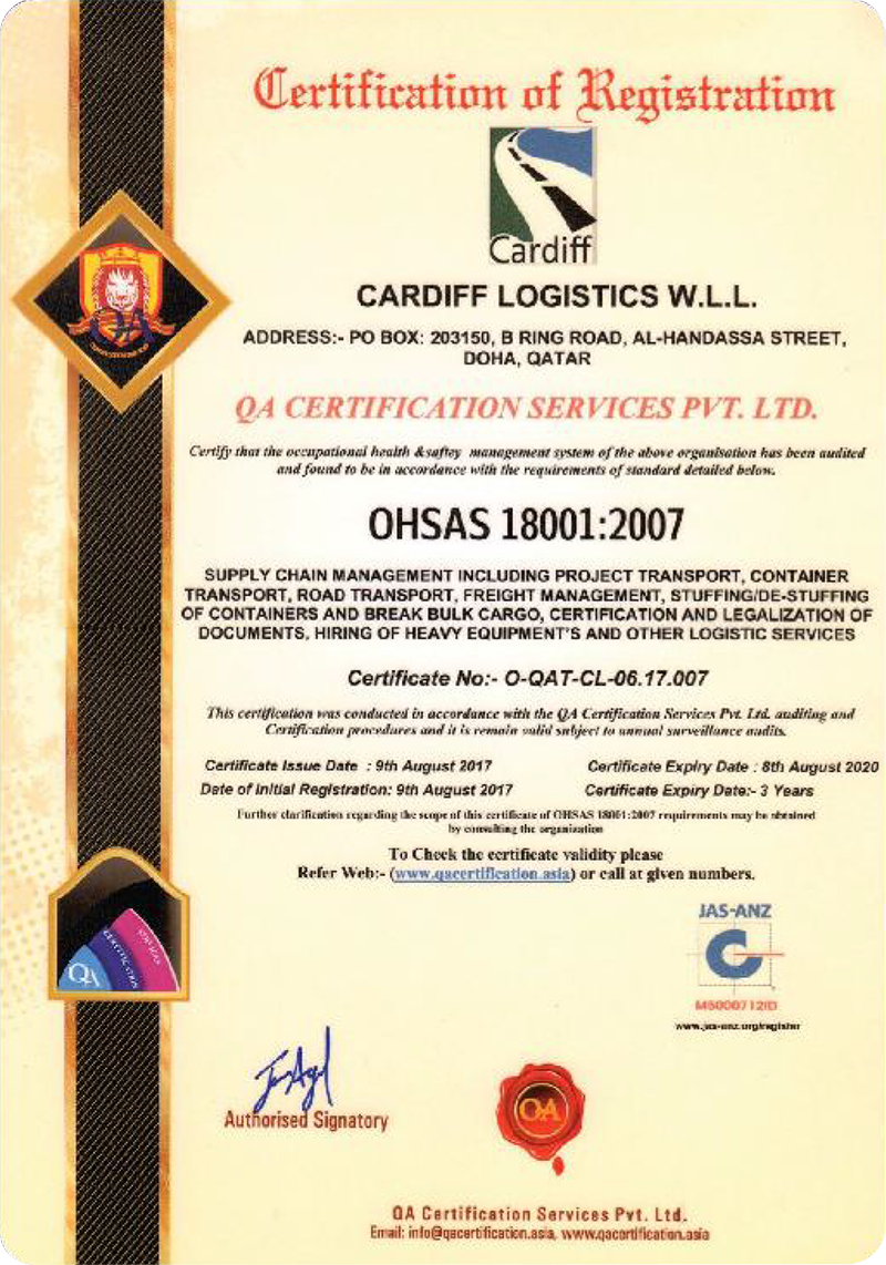 “Our policy is to provide and maintain safe and healthy working conditions, equipment and systems of work for all our employees, and to provide such information, training and supervision as they need for this purpose. The allocation of duties for safety matters and the particular arrangements which we will make to implement the policy are attached. The policy will be kept up to date, particularly as the business changes in nature and size. To ensure this, the policy and the way in which it has operated will be reviewed every year. Cardiff Logistics will ensure that all its employees and facilities are compliant with legal requirements for Health and Safety.